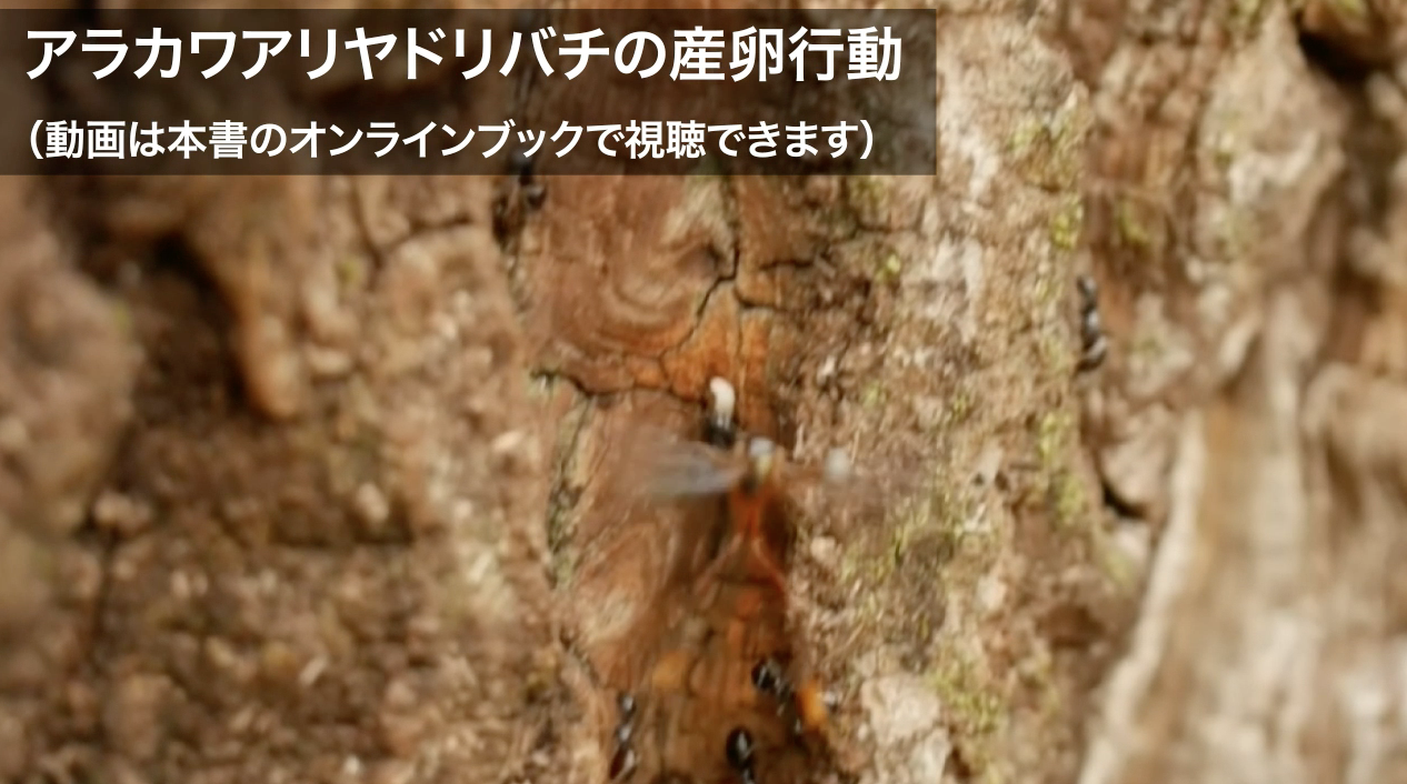 実はこのアラカワアリヤドリバチの産卵行動は、「Cobelliという人がイタリア北部で観察したことを1906年に発表している」とされている。